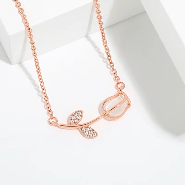 Το ροζ χρυσό κολιέ τουλίπα ByQueen αποπνέει ζεστασιά και σύγχρονη κομψότητα. Τα φύλλα με ζιργκόν προσθέτουν φωτεινότητα, ενώ το μπουμπούκι της τουλίπας δημιουργεί μια τρυφερή, ρομαντική αισθητική. Ένα κόσμημα που ταιριάζει σε κάθε outfit και εκφράζει την premium ταυτότητα του ByQueen. Χαρακτηριστικά