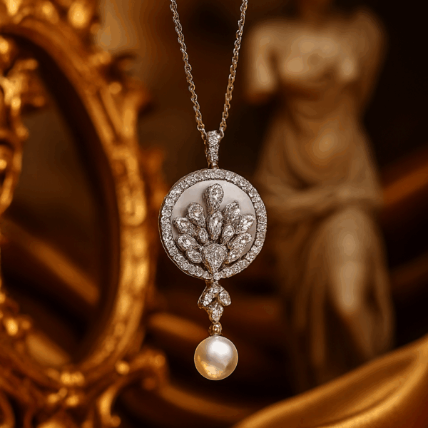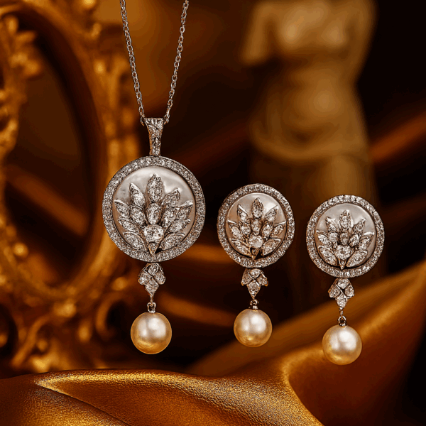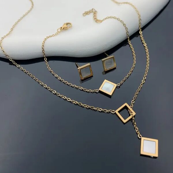By Queen Σετ Κοσμημάτων Με Μαργαριτάρι Και Τετραγωνισμένο Σχέδιο