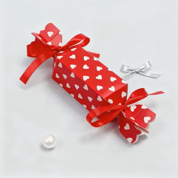 Το κουτί δώρου “Candy Heart” της By Queen είναι μια ρομαντική και παιχνιδιάρικη επιλογή για μικρά δώρα με συναισθηματική αξία. Το σχέδιο του θυμίζει τυλιγμένη καραμέλα, με κόκκινο φόντο και λευκά καρδούλες, δεμένο στις άκρες με γυαλιστερές κορδέλες. Η παρουσίασή του είναι festive, γλυκιά και ιδανική για δώρα που συνοδεύουν στιγμές αγάπης.