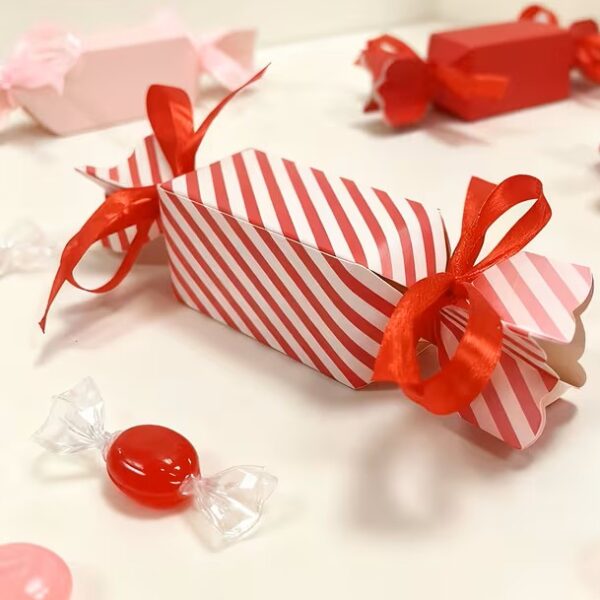Ένα παιχνιδιάρικο κουτί δώρου σε σχήμα καραμέλας που προσθέτει γιορτινή ενέργεια και χαρά σε κάθε προσφορά.