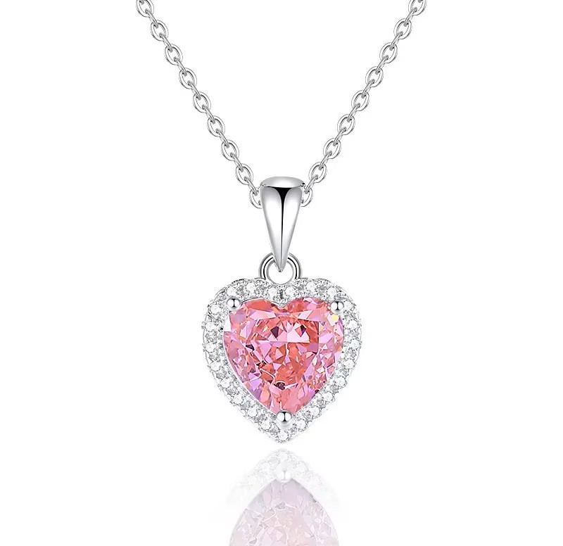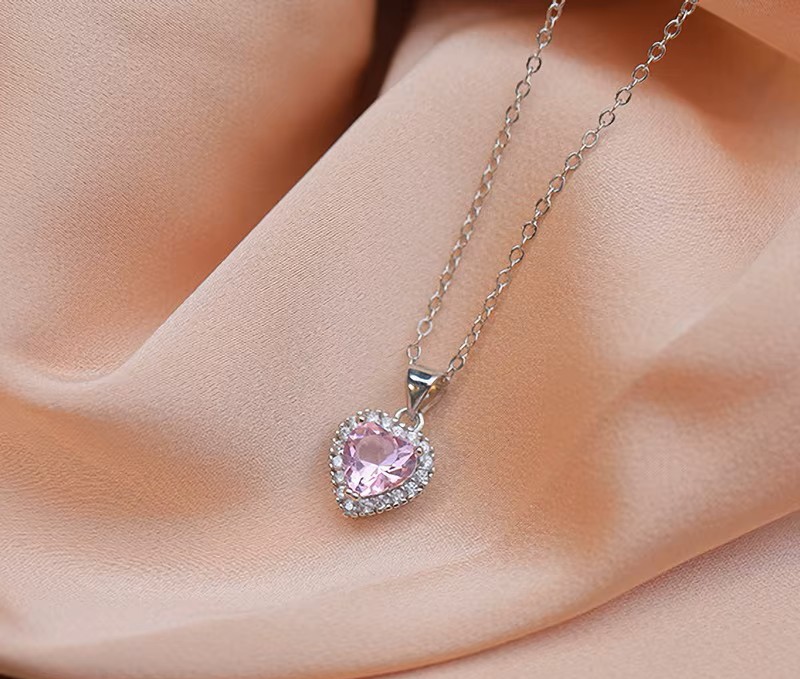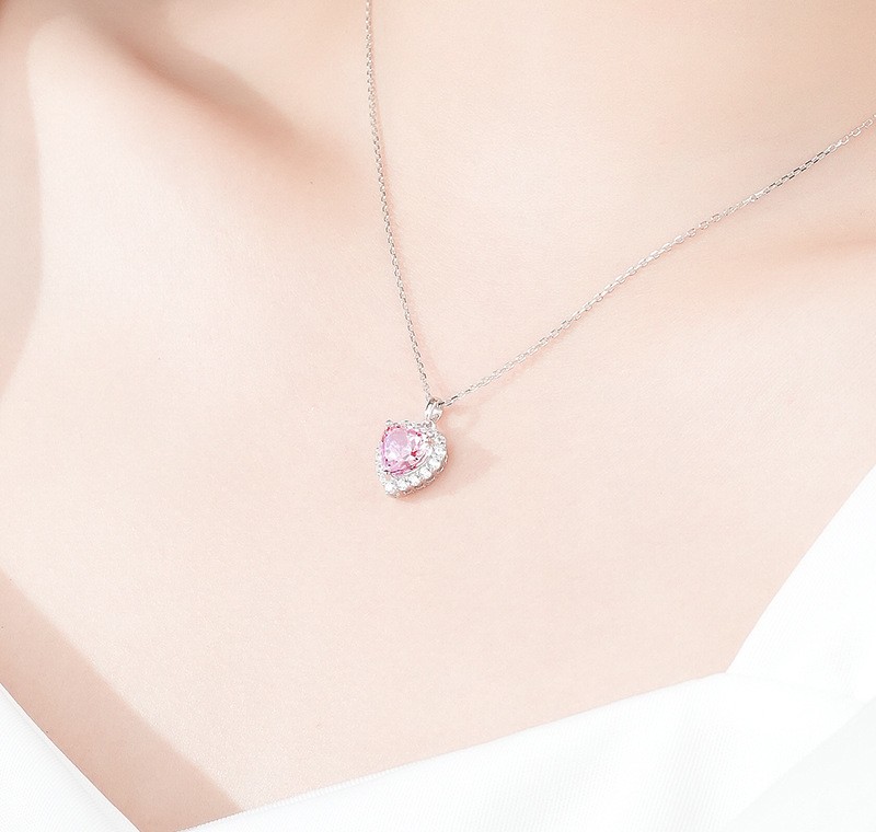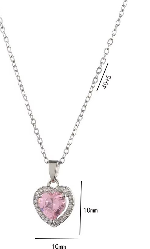 Ένα γοητευτικό,κομψό, πολυτελές κολιέ σε σχήμα καρδιάς με ασημένια αλυσίδα με διάφανα αστραφτερά ζιρκόν και με κεντρικό ροζ ζιρκόν. Ένα πολυτελές σχέδιο για καθημερινές εμφανίσεις.Κατάλληλο για να φορεθεί απο το πρωί εώς το βράδυ αλλά και σε μια βραδινή έξοδο και να εντυπωσιάσετε.