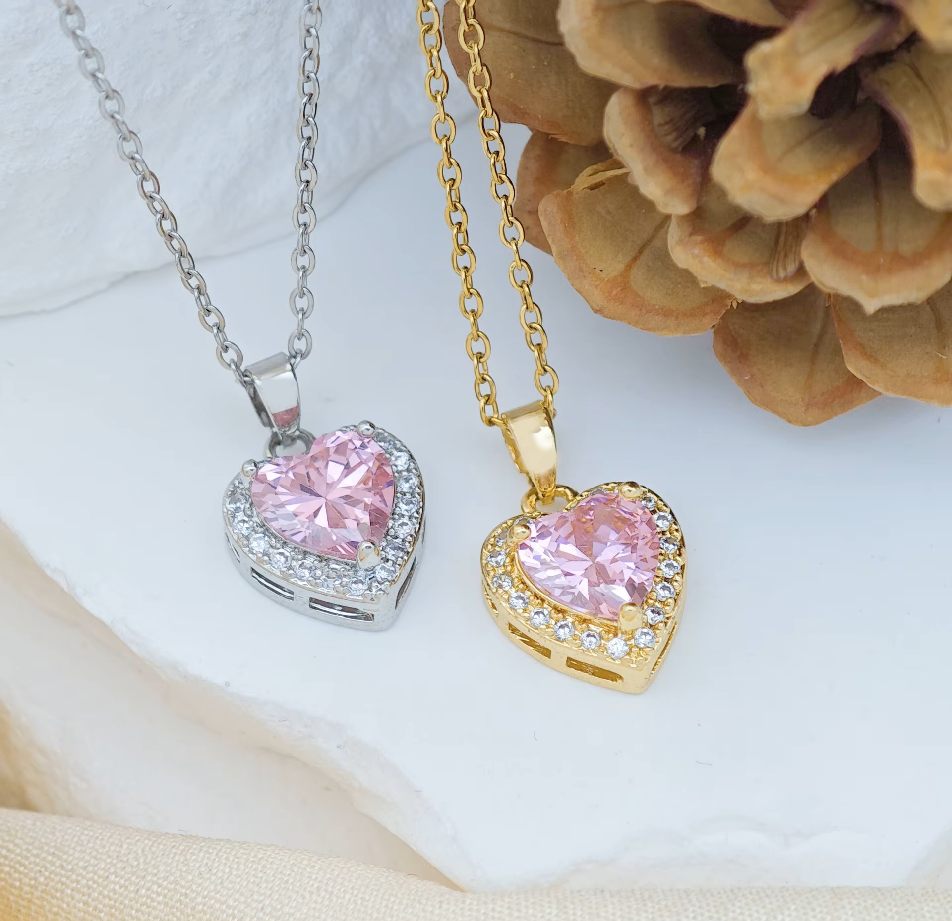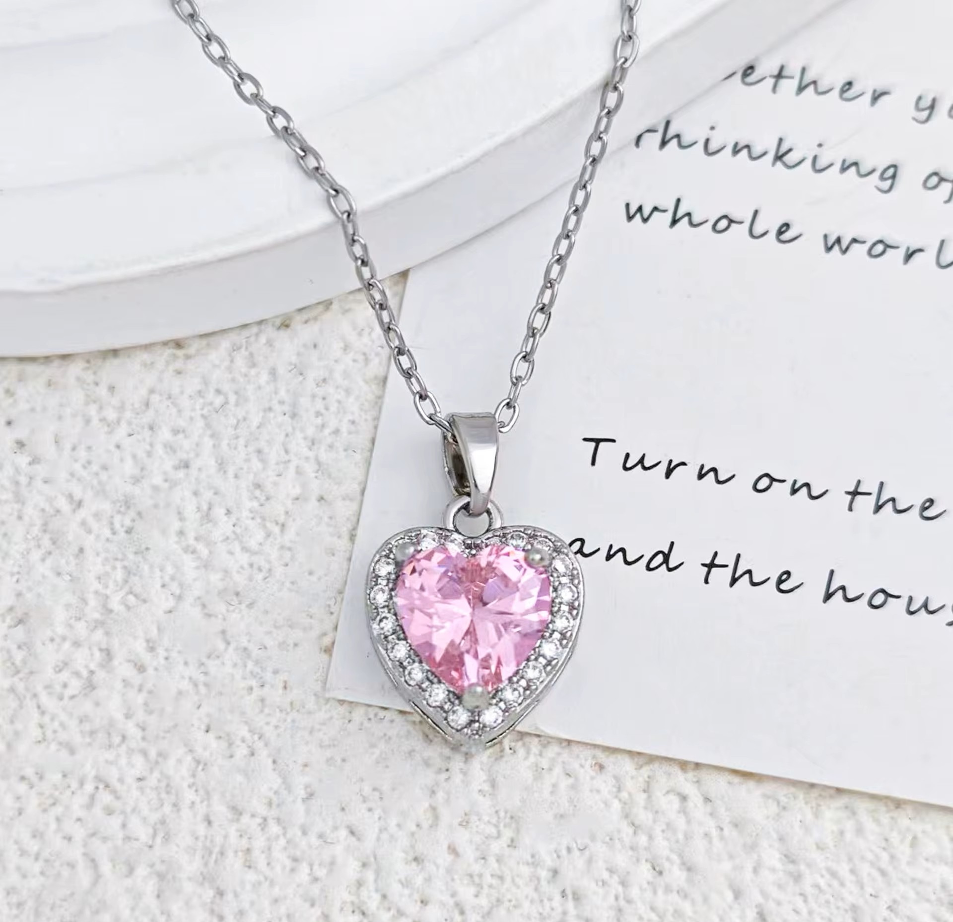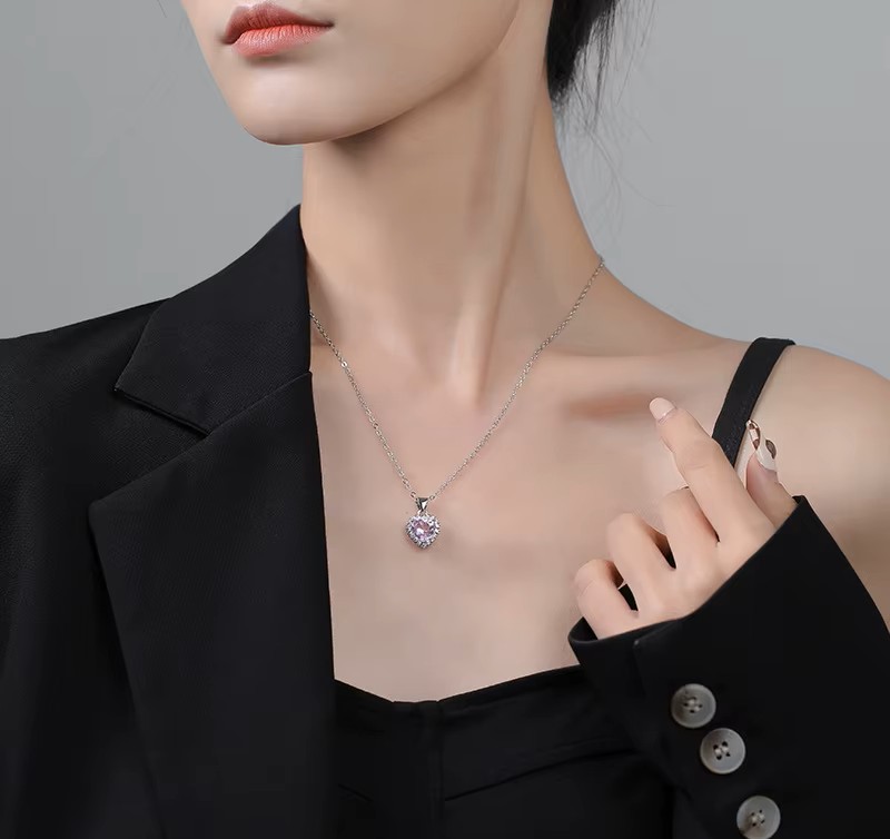 Ένα γοητευτικό,κομψό, πολυτελές κολιέ σε σχήμα καρδιάς με ασημένια αλυσίδα με διάφανα αστραφτερά ζιρκόν και με κεντρικό ροζ ζιρκόν. Κατάλληλο για να φορεθεί απο το πρωί εώς το βράδυ αλλά και σε μια βραδινή έξοδο και να εντυπωσιάσετε.