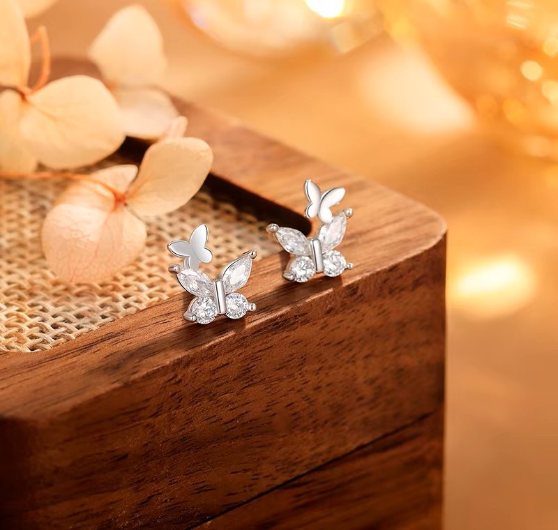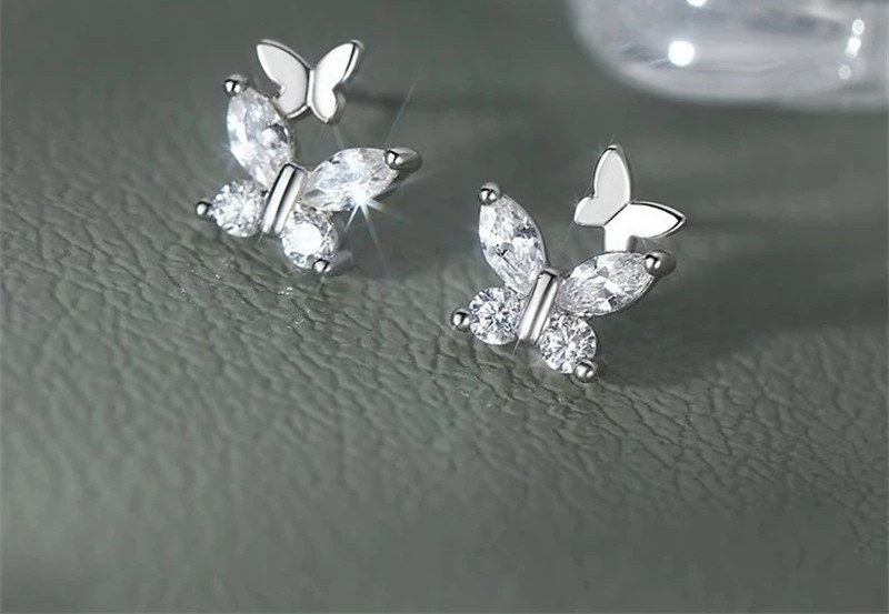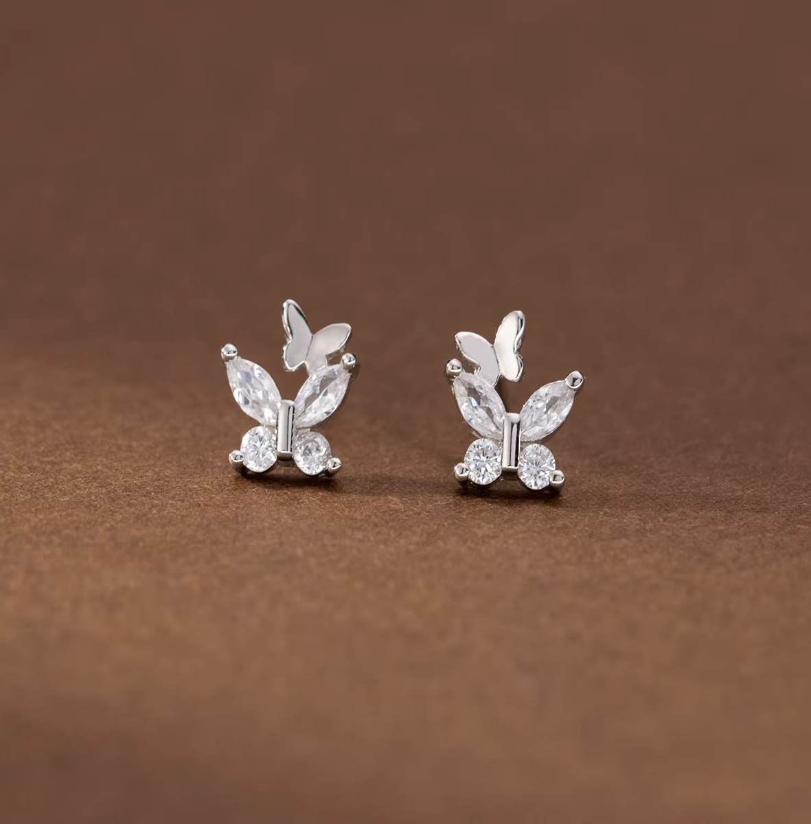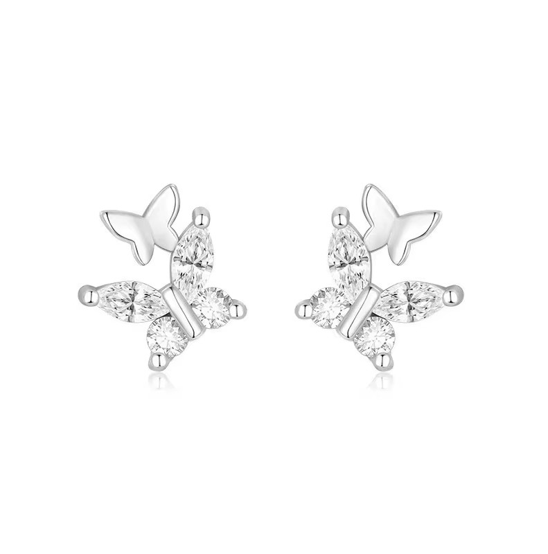 Σκουλαρίκια μινιμαλιστικά με διπλή πεταλούδα από ασήμι 925 με λαμπερά ζιργκόν και εντυπωσιακά κρύσταλλα.