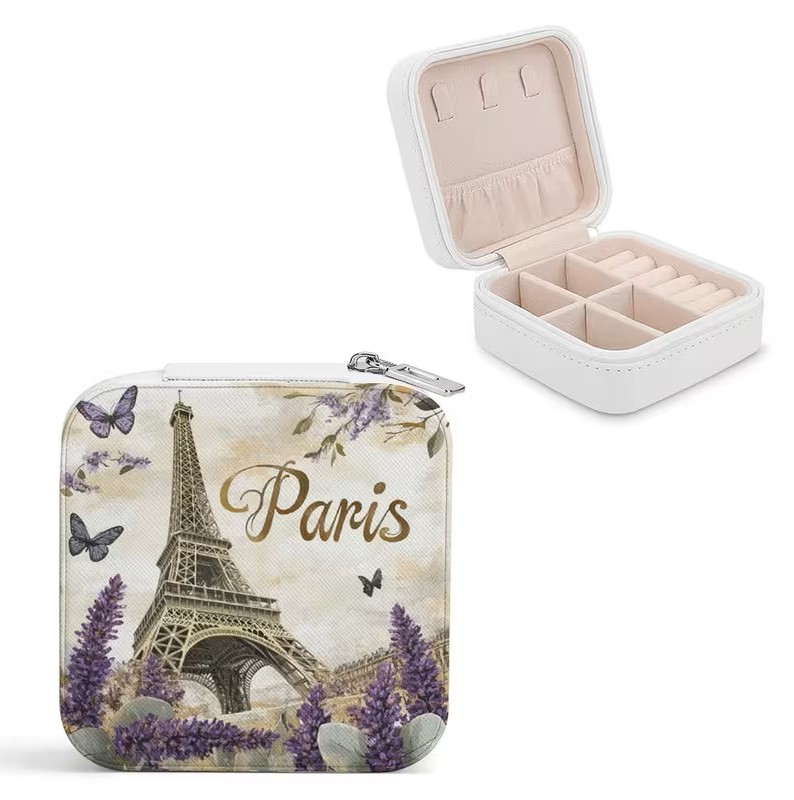 Κοσμηματοθήκη με Eiffel Tower, λεβάντες και πεταλούδες. Ιδανική για κοσμήματα και ρομαντικά δώρα.