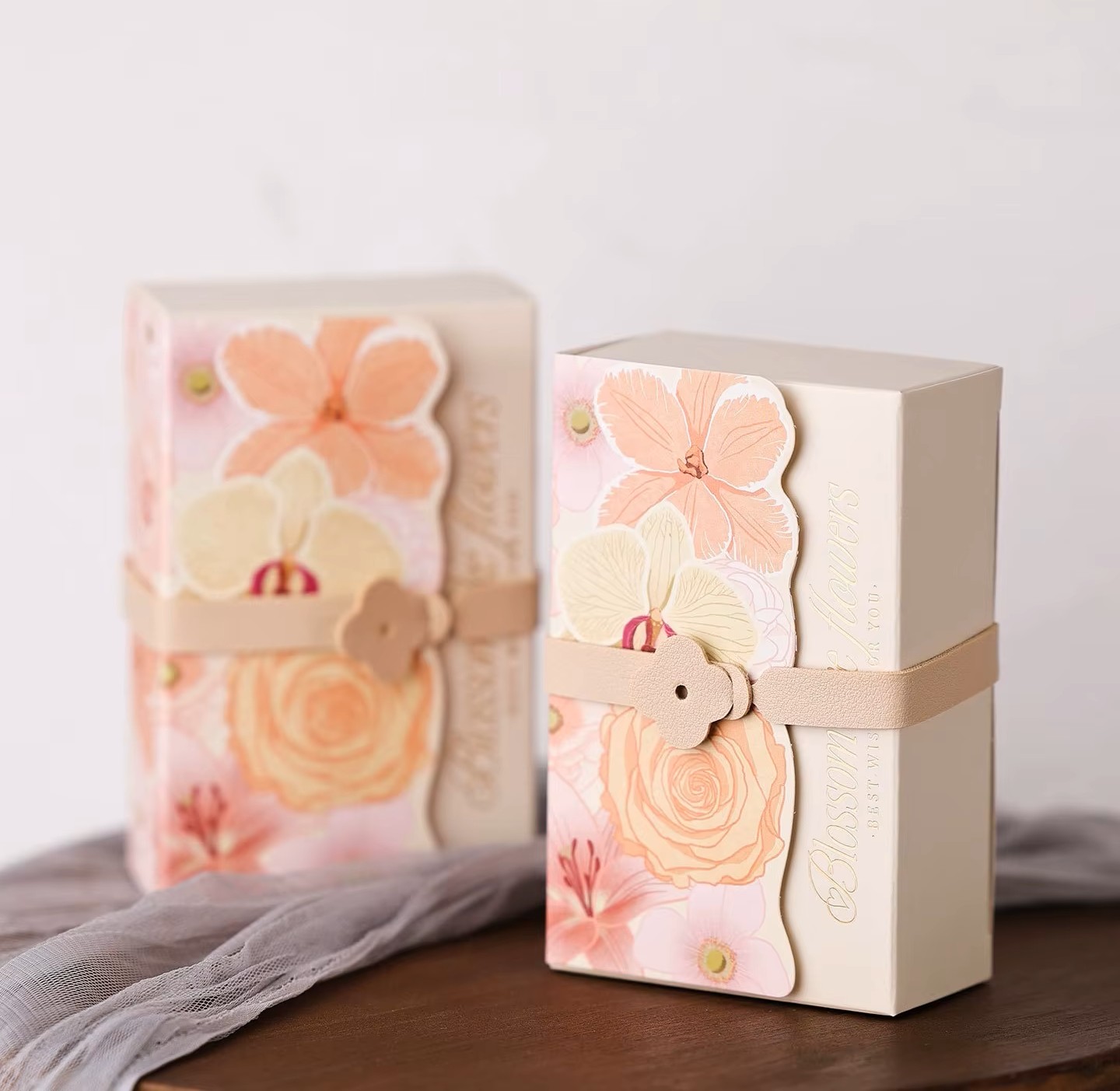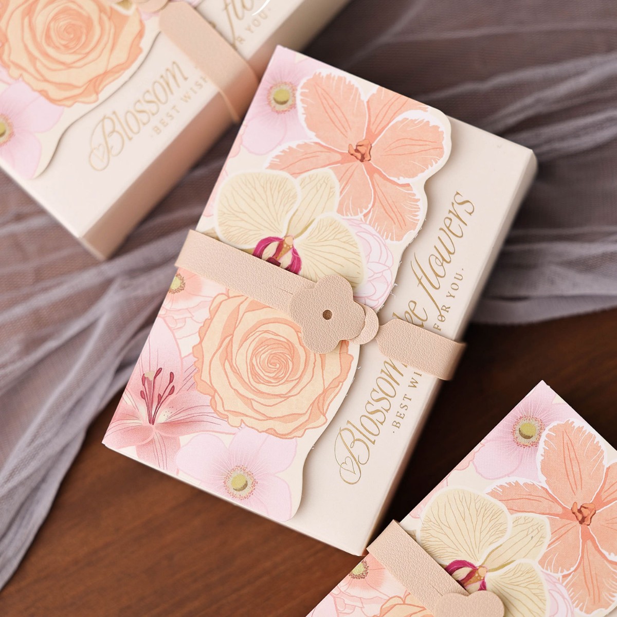 Το κουτί δώρου “Blossom Like Flowers” της By Queen είναι μια refined επιλογή για κοσμήματα, αξεσουάρ ή θεματικά δώρα με ευγενικό χαρακτήρα. Το εξωτερικό του είναι διακοσμημένο με εικονογραφήσεις λουλουδιών — τριαντάφυλλα, ορχιδέες, κρίνα — σε αποχρώσεις του ροζ, peach και κρεμ, πάνω σε παστέλ φόντο. Η φράση “Blossom like flowers – Best Wishes For You” προσθέτει μια συναισθηματική και ευγενική νότα, ιδανική για δώρα που συνοδεύουν ευχές, γιορτές ή προσωπικές στιγμές.