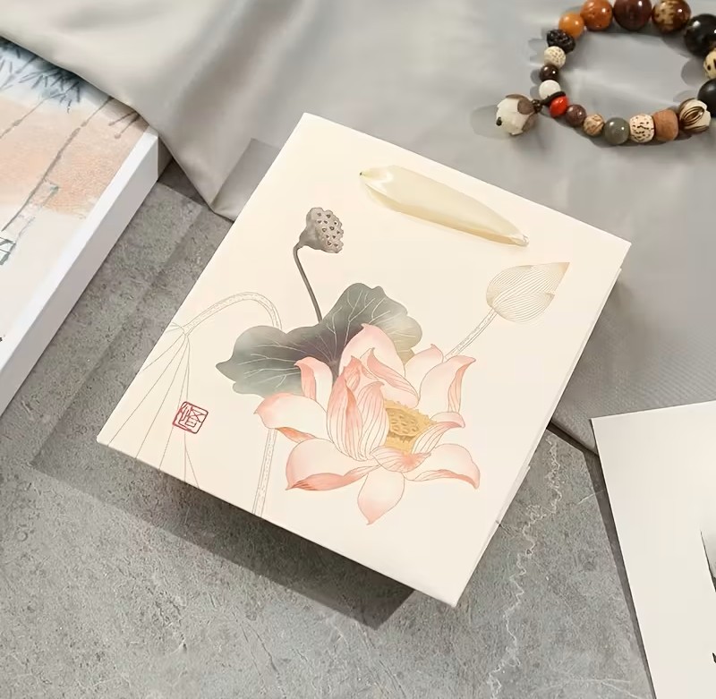 Ένα σακουλάκι δώρου με λωτό και παραδοσιακή αισθητική που αποπνέει αρμονία, φροντίδα και πολιτισμική κομψότητα.