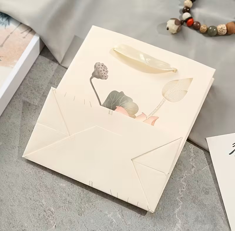 σακουλάκι δώρου με σχέδιο λωτό σε κρεμ απόχρωση