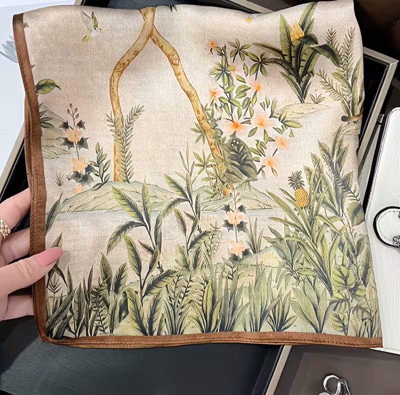 By Queen Jungle Σατέν Μαντήλι Με Τροπικά Φυτά & Ζώα