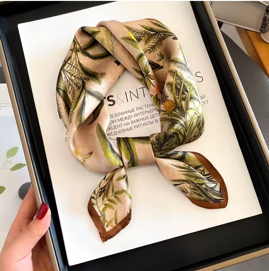 Αναδείξτε την εξωτική σας πλευρά με αυτό το jungle-themed σατέν φουλάρι By Queen. Το μπεζ φόντο, το καφέ περίγραμμα και το καλλιτεχνικό σχέδιο με τροπικά φυτά, φλαμίνγκο, μαϊμού και αιλουροειδές δημιουργούν μια δυναμική, statement αισθητική. Η απαλή, γυαλιστερή υφή του σατέν προσφέρει πολυτέλεια και άνεση, ενώ η ευελιξία του το καθιστά ιδανικό για λαιμό, μαλλιά ή τσάντα. Ένα αξεσουάρ που ξεχωρίζει και δίνει χαρακτήρα σε κάθε εμφάνιση.