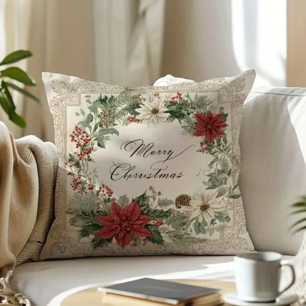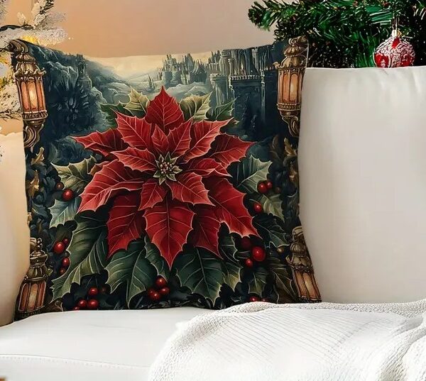 By Queen Limited Festive Edition Μαξιλαροθήκη Peach Skin Velvet Mε Σχέδιο Ποϊνσέτια 45×45εκ.