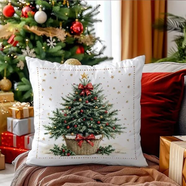 By Queen Limited Festive Edition Μαξιλαροθήκη Tree Με Κόκκινες Μπάλες Και Χρυσό Αστέρι 45×45εκ.