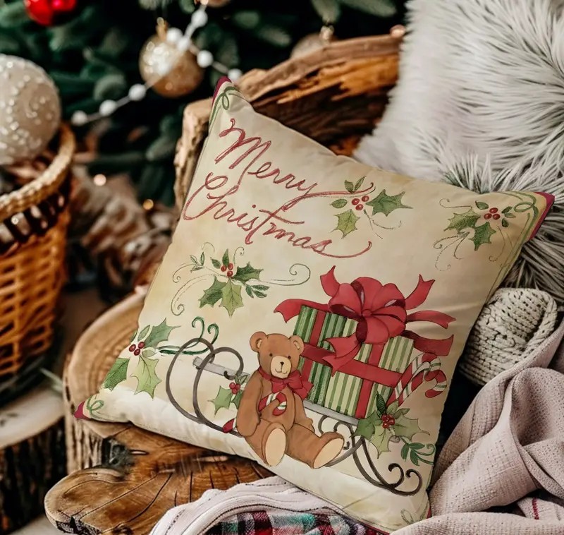 Το πιο γλυκό αρκουδάκι της σεζόν ήρθε να στολίσει το σαλόνι σου! Με candy cane, δώρο και γκι, το κάλυμμα μαξιλαριού By Queen φέρνει τη χαρά των Χριστουγέννων σε κάθε γωνιά του σπιτιού