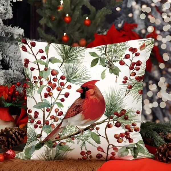 By Queen Limited Festive Edition Μαξιλαροθήκη Με Καρδινάλιο Και Κλαδιά Πεύκου 45×45εκ.