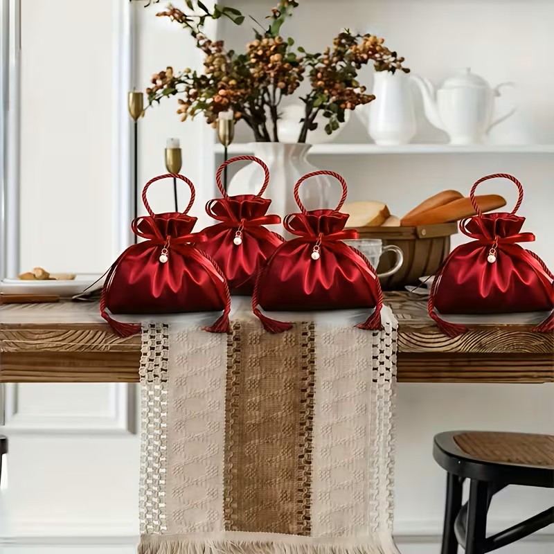 Το σατέν πουγκί “Red Pearl” της By Queen είναι μια refined επιλογή για κοσμήματα, αρωματικά ή θεματικά δώρα με ceremonial χαρακτήρα. Η πλούσια κόκκινη απόχρωση του σατέν υφάσματος συνδυάζεται με twisted κορδόνι, φουντάκια και ένα περλέ charm με χρυσή βάση, δημιουργώντας μια εμπειρία unboxing που θυμίζει τελετουργία.
