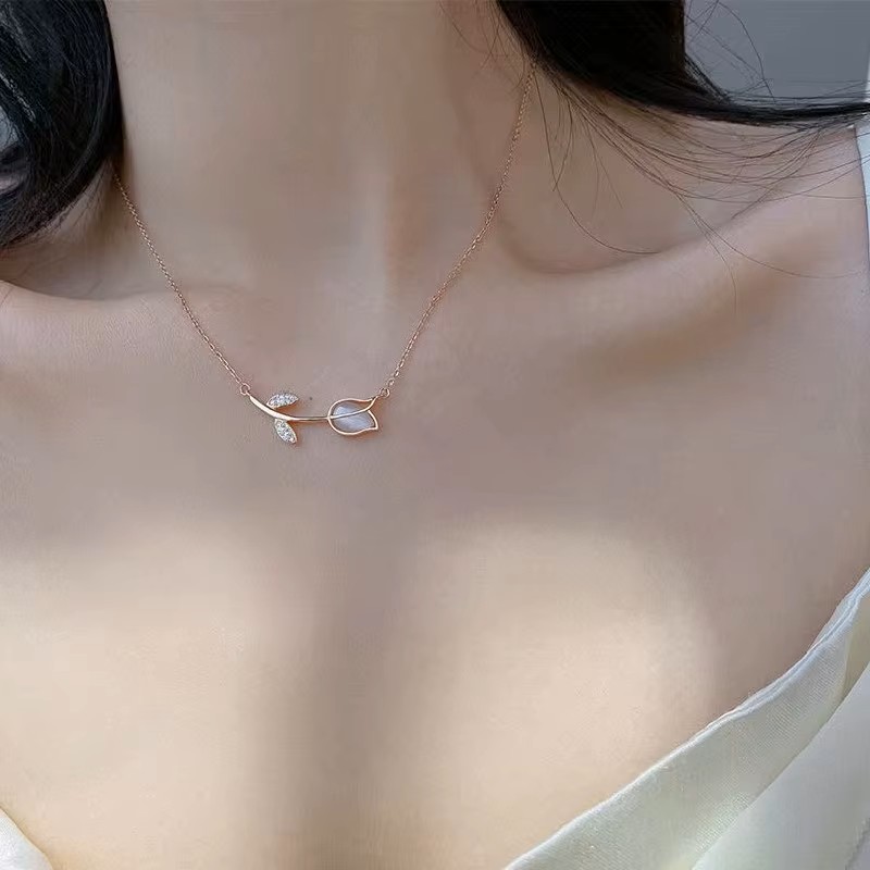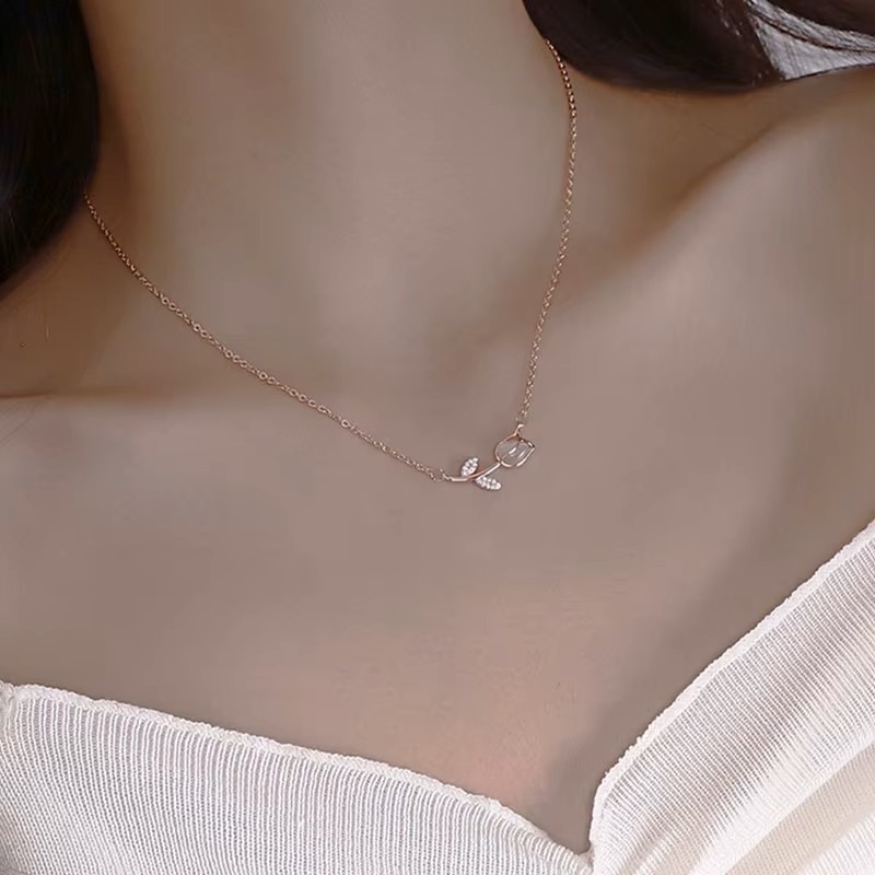 Το ροζ χρυσό κολιέ τουλίπα ByQueen αποπνέει ζεστασιά και σύγχρονη κομψότητα. Τα φύλλα με ζιργκόν προσθέτουν φωτεινότητα, ενώ το μπουμπούκι της τουλίπας δημιουργεί μια τρυφερή, ρομαντική αισθητική. Ένα κόσμημα που ταιριάζει σε κάθε outfit και εκφράζει την premium ταυτότητα του ByQueen.