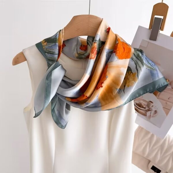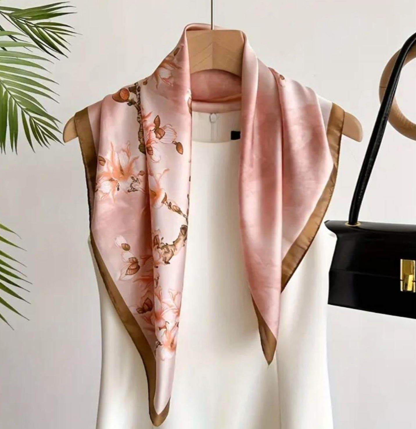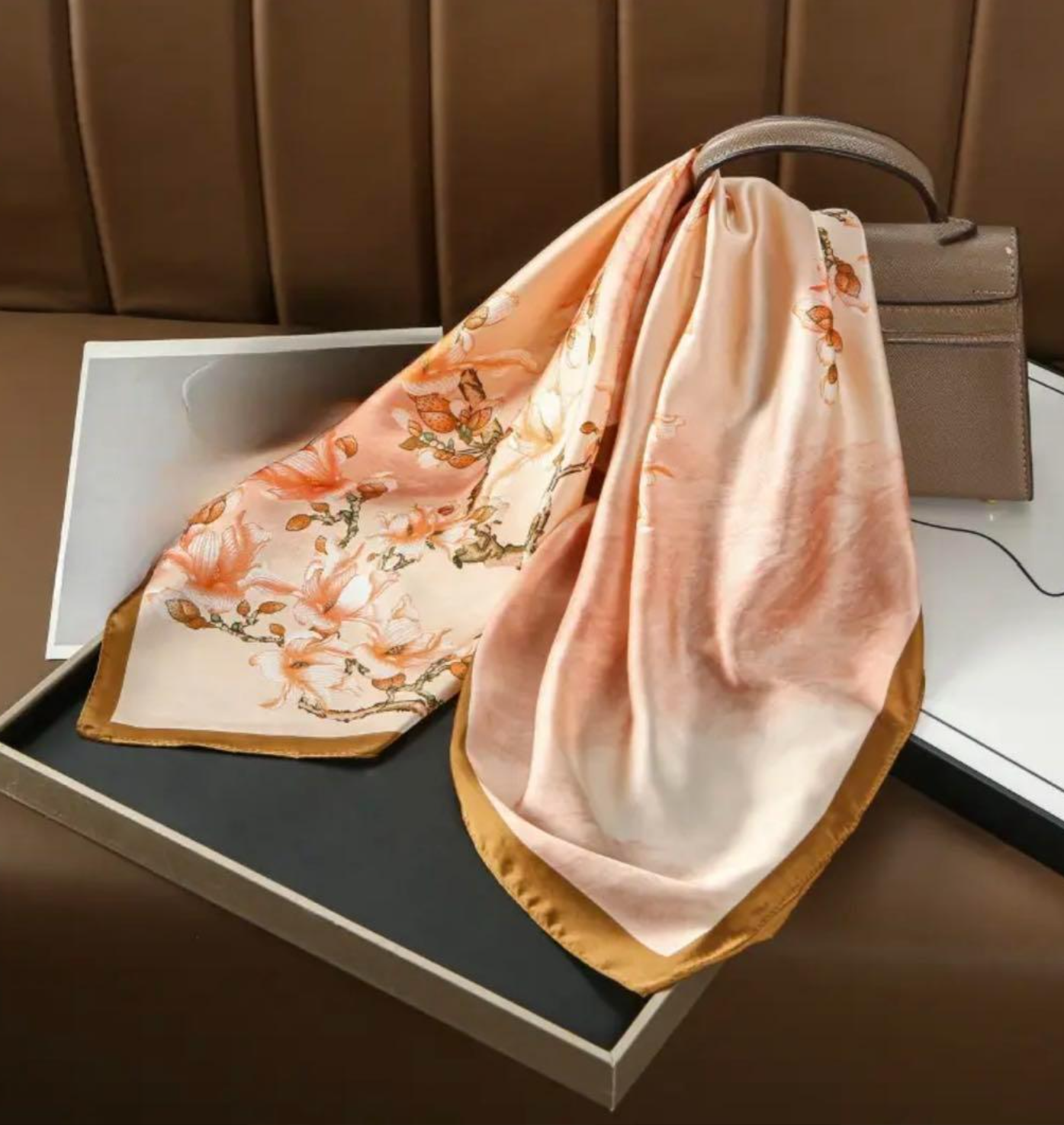 Αναδείξτε τη θηλυκότητα και τη ρομαντική σας πλευρά με αυτό το premium σατέν φουλάρι By Queen. Το απαλό ροζ φόντο, τα ροδακινί και λευκά άνθη και το κομψό χρυσό περίγραμμα δημιουργούν μια καλλιτεχνική, ανοιξιάτικη αισθητική που φωτίζει κάθε εμφάνιση. Η απαλή, γυαλιστερή υφή του σατέν προσφέρει άνεση και πολυτέλεια, ενώ η ευελιξία του το κάνει ιδανικό για λαιμό, μαλλιά ή τσάντα. Ένα αξεσουάρ που μετατρέπει το καθημερινό στιλ σε statement.