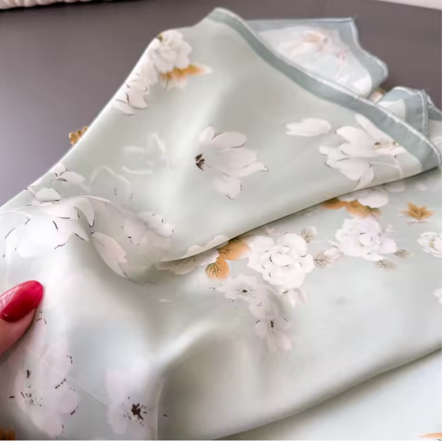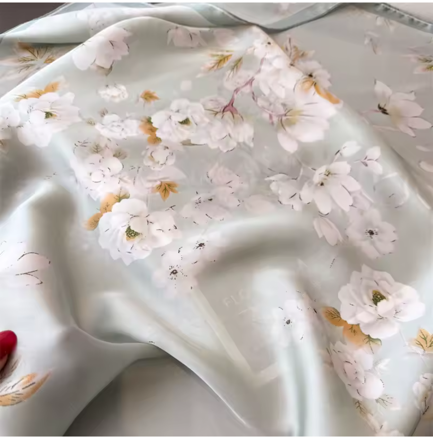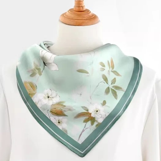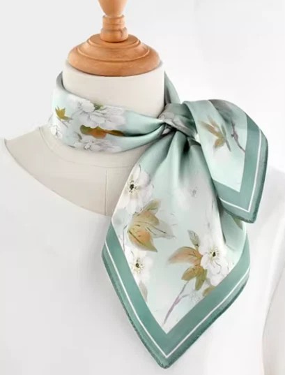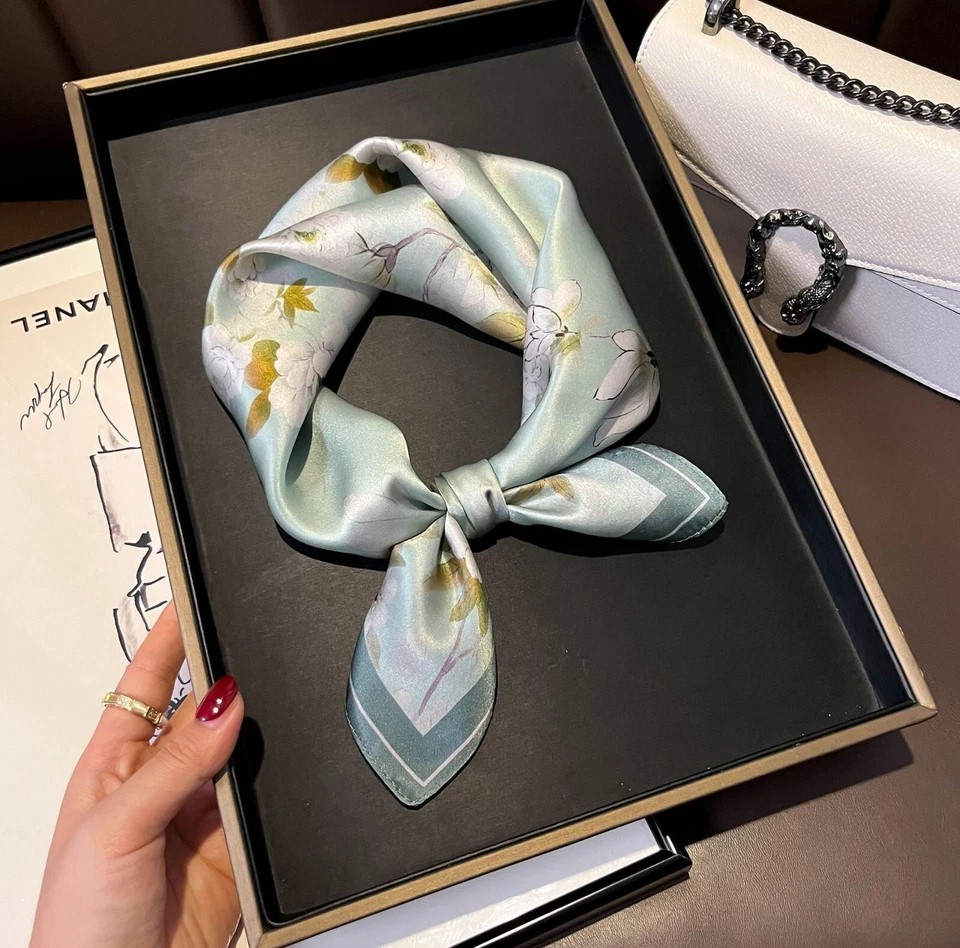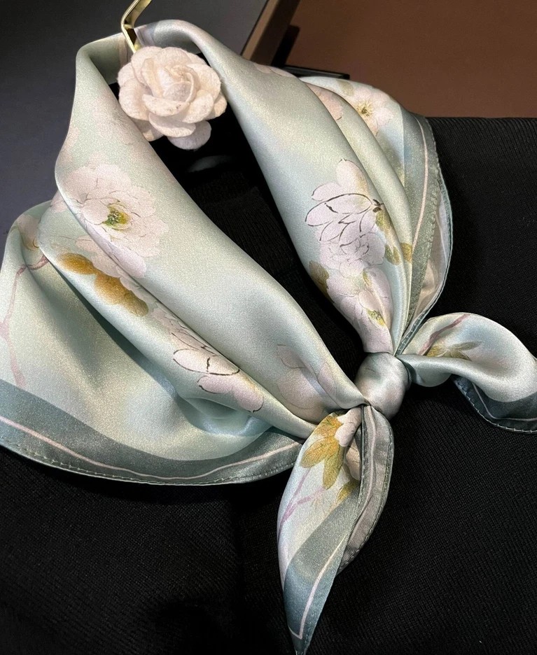 Αναδείξτε τη φρεσκάδα και την κομψότητα σας με αυτό το premium σατέν φουλάρι By Queen. Το απαλό πράσινο φόντο, τα λευκά άνθη και το σκούρο περίγραμμα δημιουργούν μια φυσική, ρομαντική αισθητική που ταιριάζει σε κάθε εποχή. Η απαλή, γυαλιστερή υφή του σατέν προσφέρει άνεση και πολυτέλεια, ενώ η ευελιξία του το καθιστά ιδανικό για λαιμό, μαλλιά ή τσάντα. Ένα αξεσουάρ που συνδυάζει φινέτσα και statement στιλ.