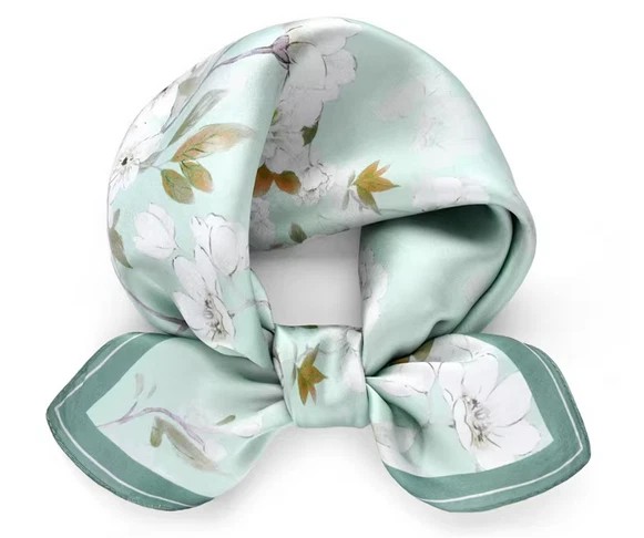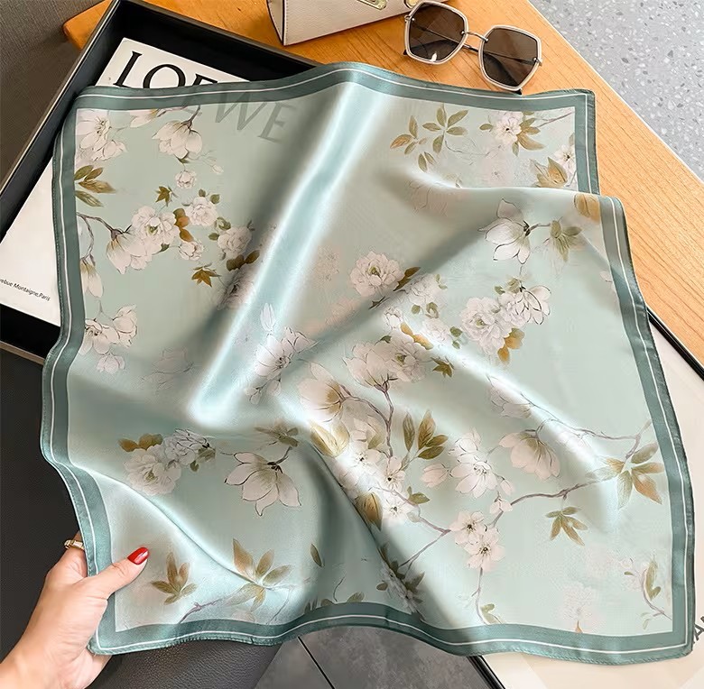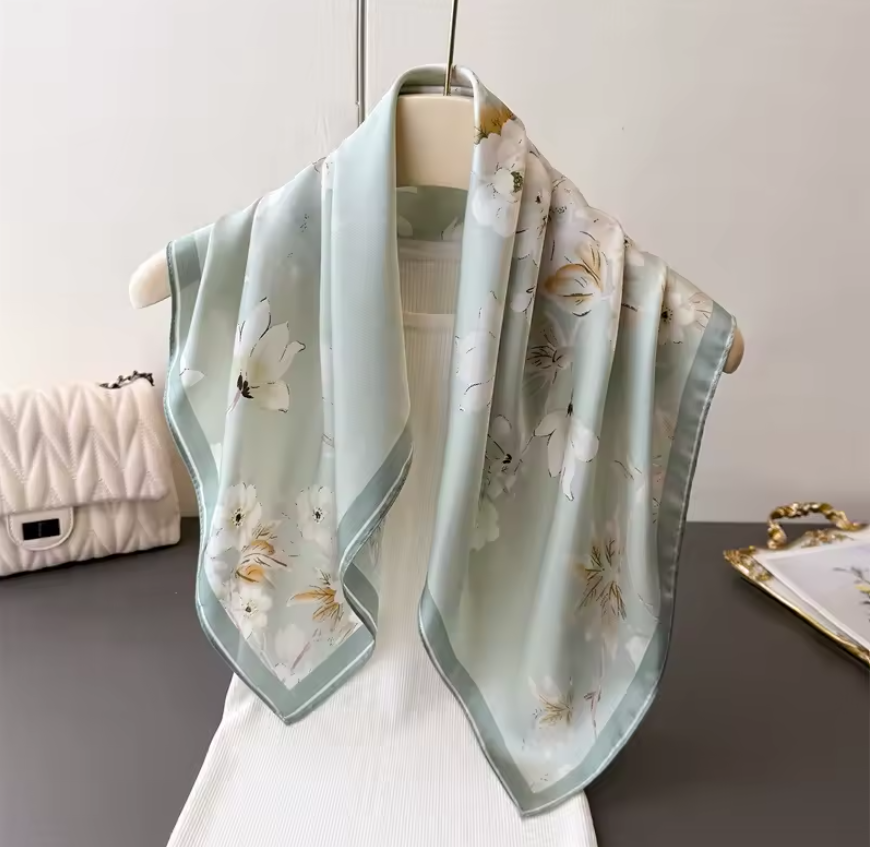 Γυναικείο Ανοιχτό Πράσινο Σατέν Μαντήλι Με Λουλουδάτο Σχέδιο