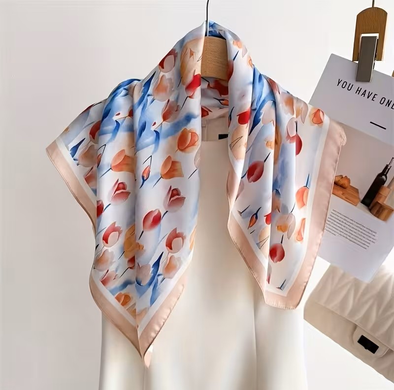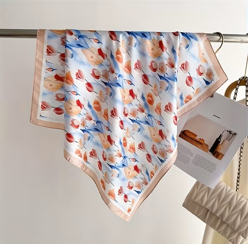 Ανοιξιάτικο λουλουδάτο γυναικείο σατέν μαντήλι μόδας