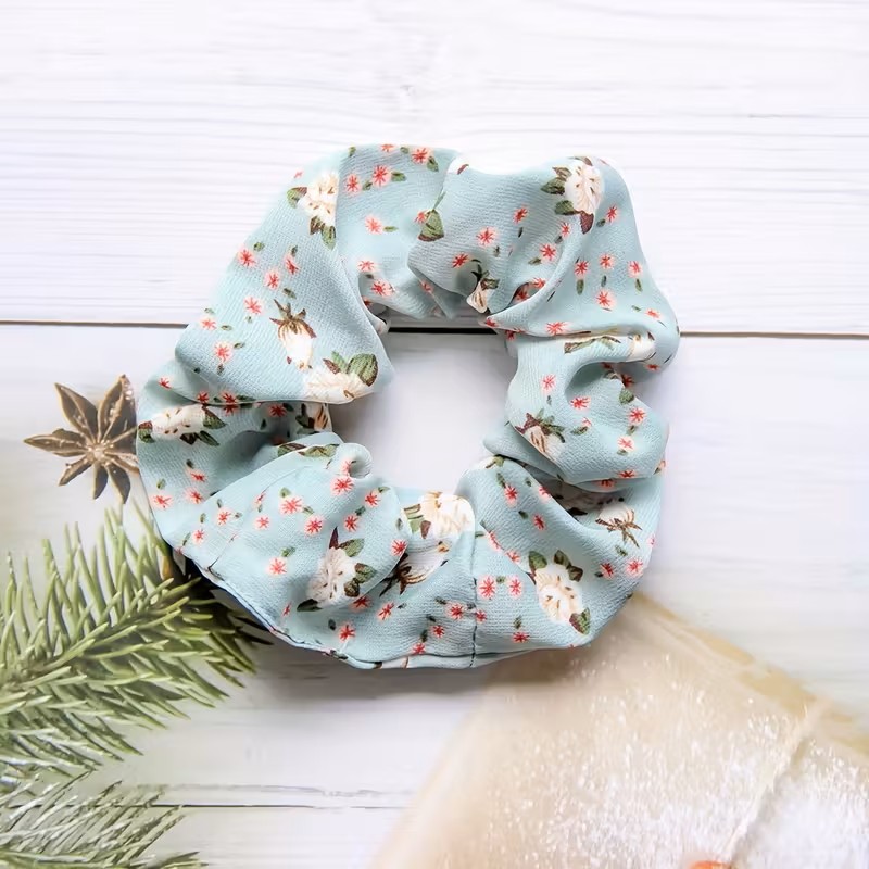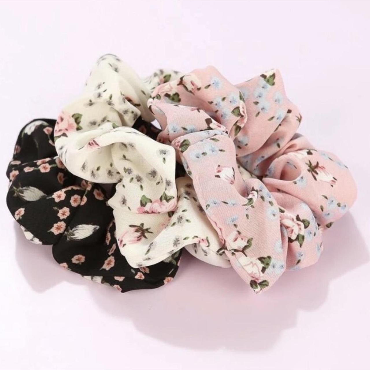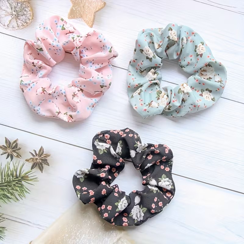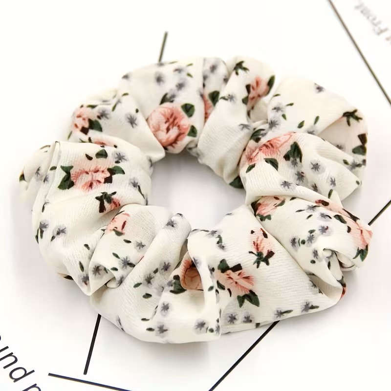 Floral scrunchie σε αποχρώσεις λευκό,γαλάζιο,ροζ και μαύρο