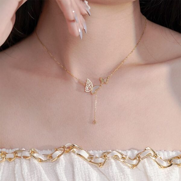 By Queen Διπλό Γυναικείο Κολιέ Butterfly Επιχρυσωμένο με Zircon